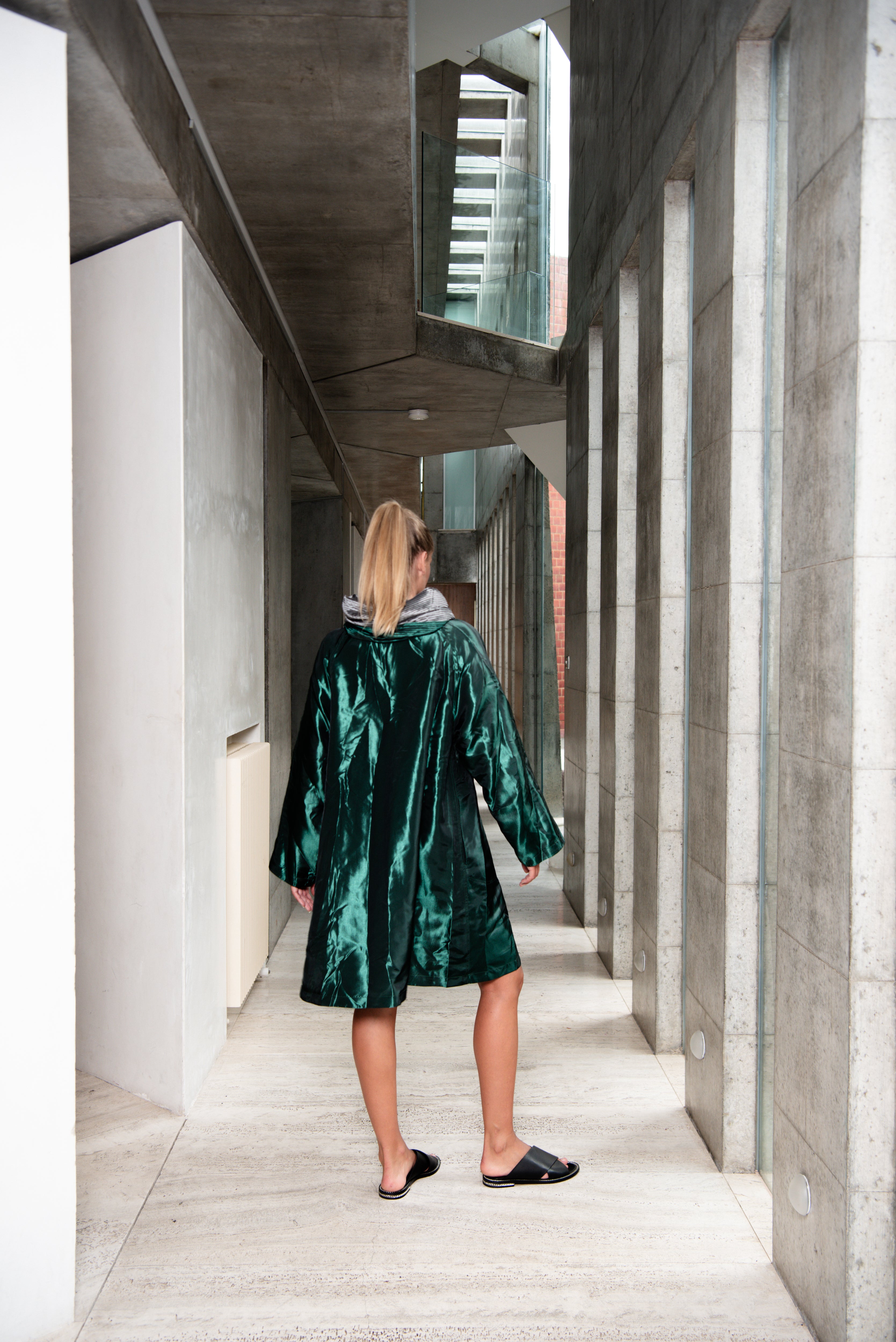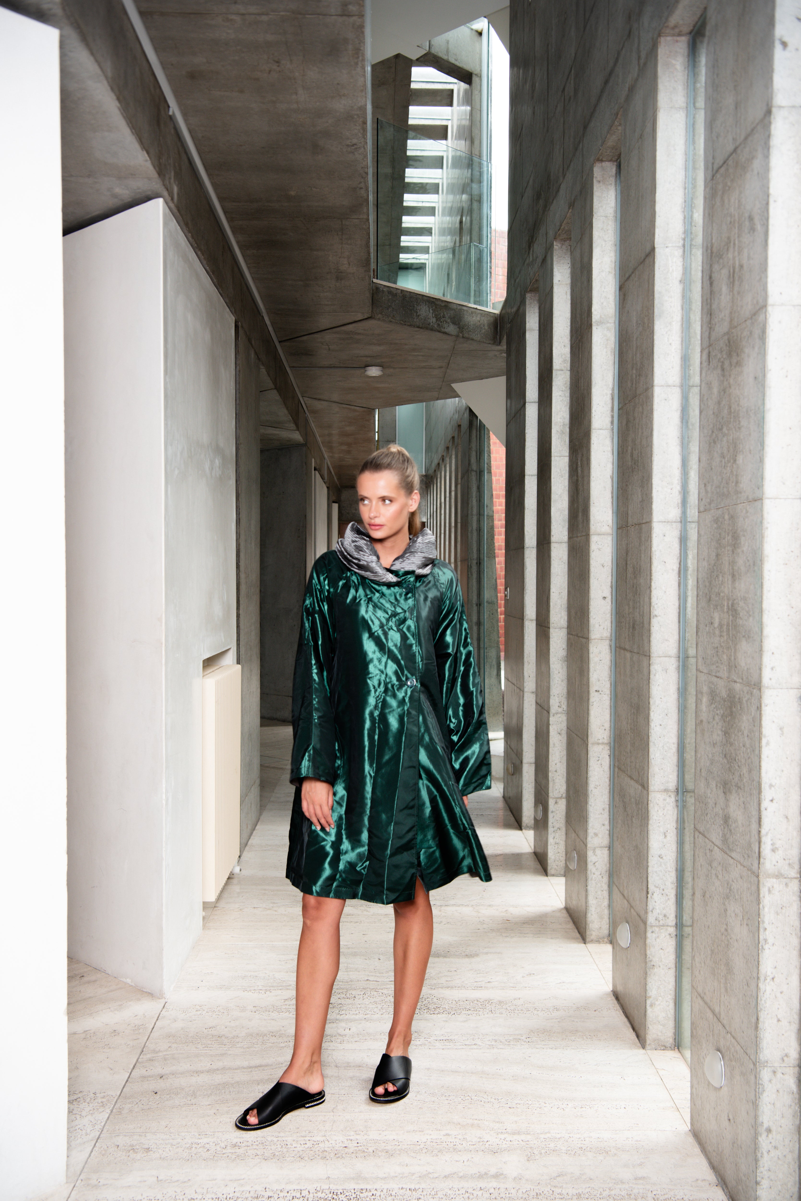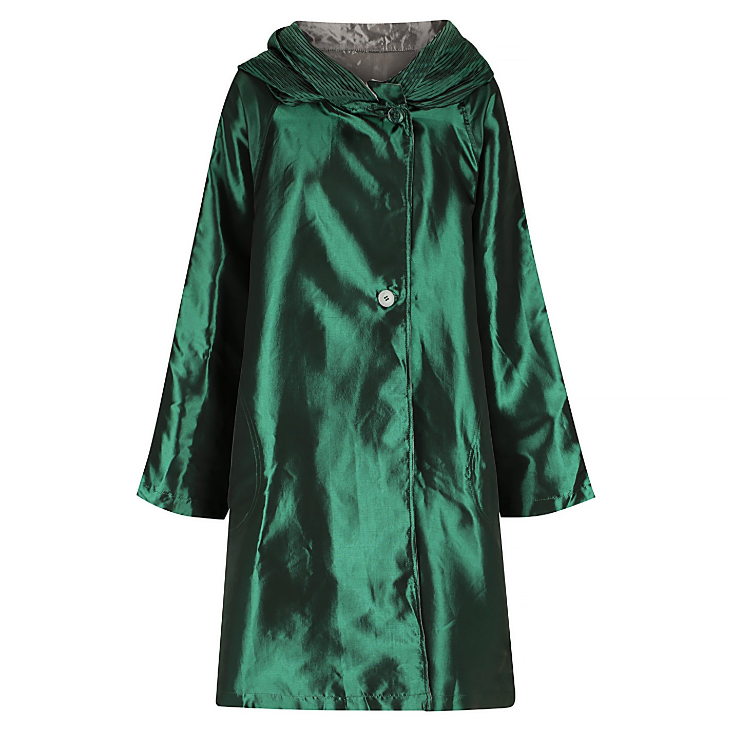 The magic words of fashion; reversible AND pockets. With its elegant pleated collar that seconds as a hood, our Pleated Reversible Coat is the item you won’t want to leave home without. A sweetly flared sleeve and structured fabric, this coat moves with grace and life. And did we mention, it’s reversible and it has pockets!