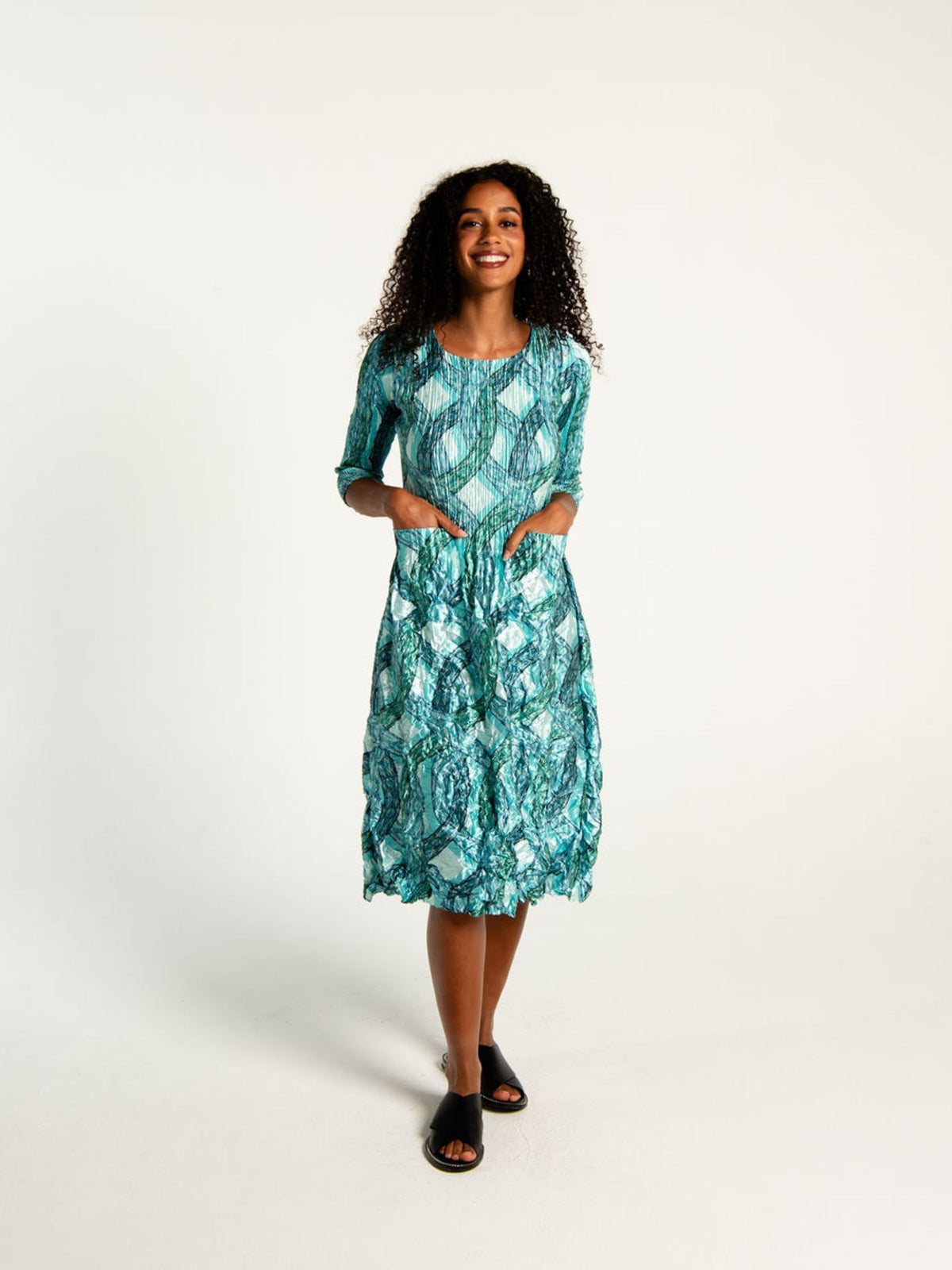 3/4 Sleeve Smash Pocket Dress - Glossy