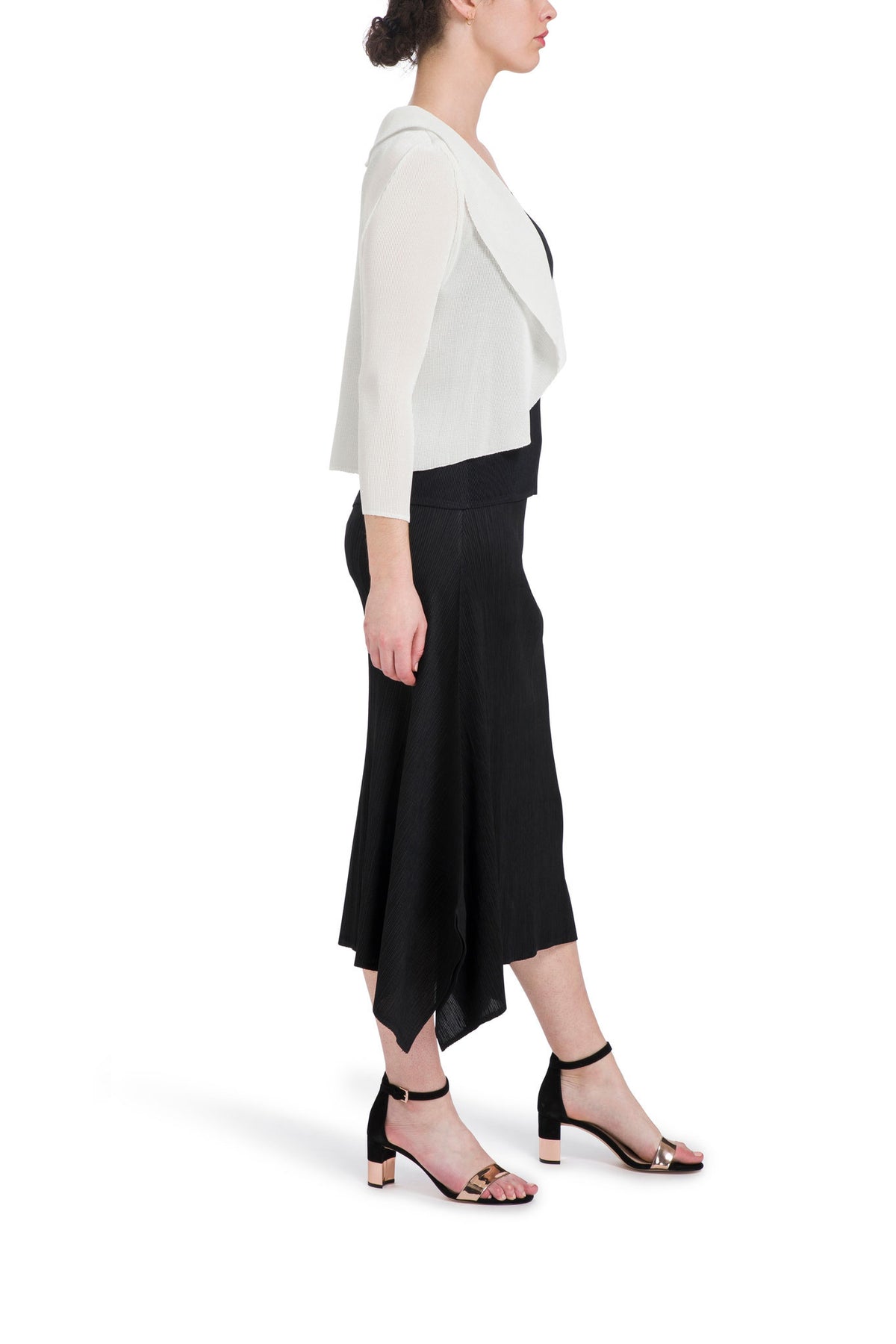 The line of the Classic Bolero has been designed to hang in just the right place on our dresses. Double pleating lends a richness to the colour palette.