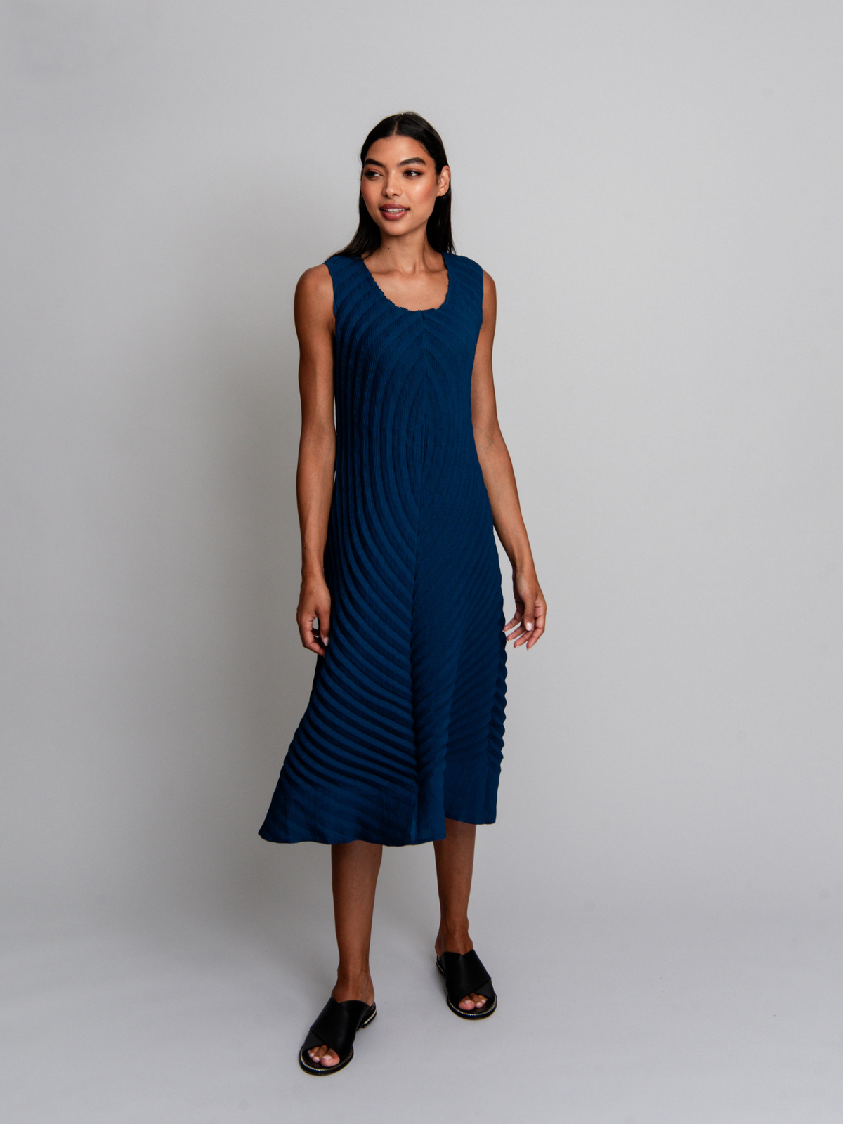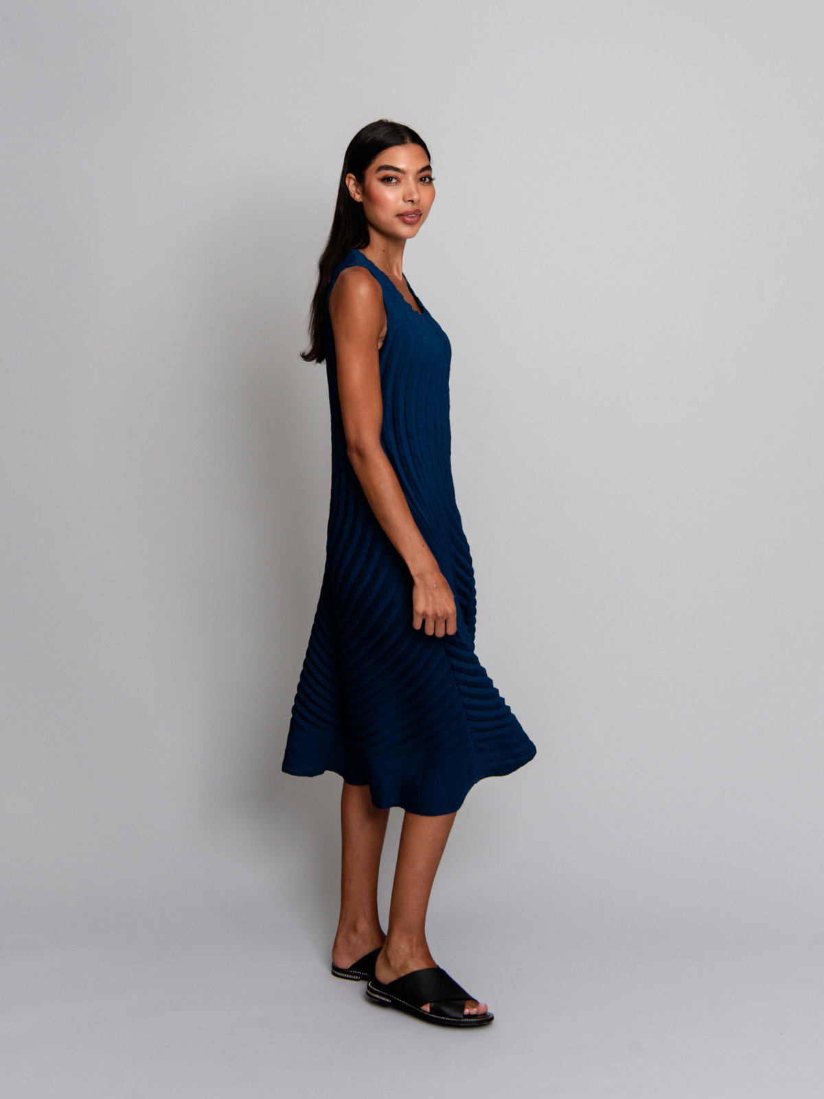 The Classico Dress reimagines pleated design with bold, curved forms that sculpt and enhance the silhouette. Its ombre finish and dramatic texture exude artistry, making it the perfect choice for statement occasions. This timeless piece elevates any capsule wardrobe.