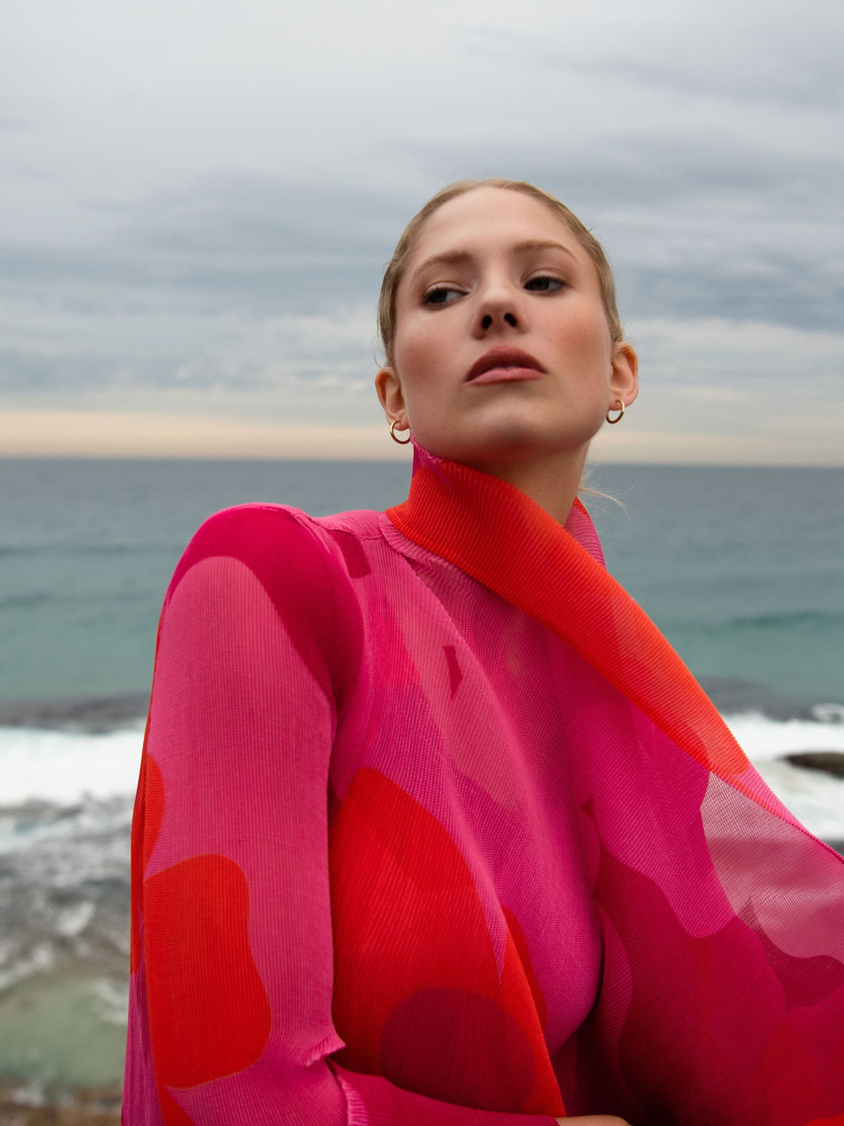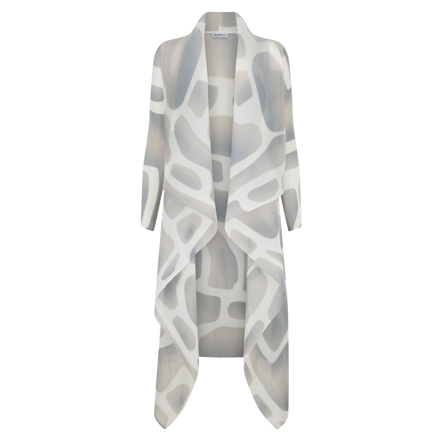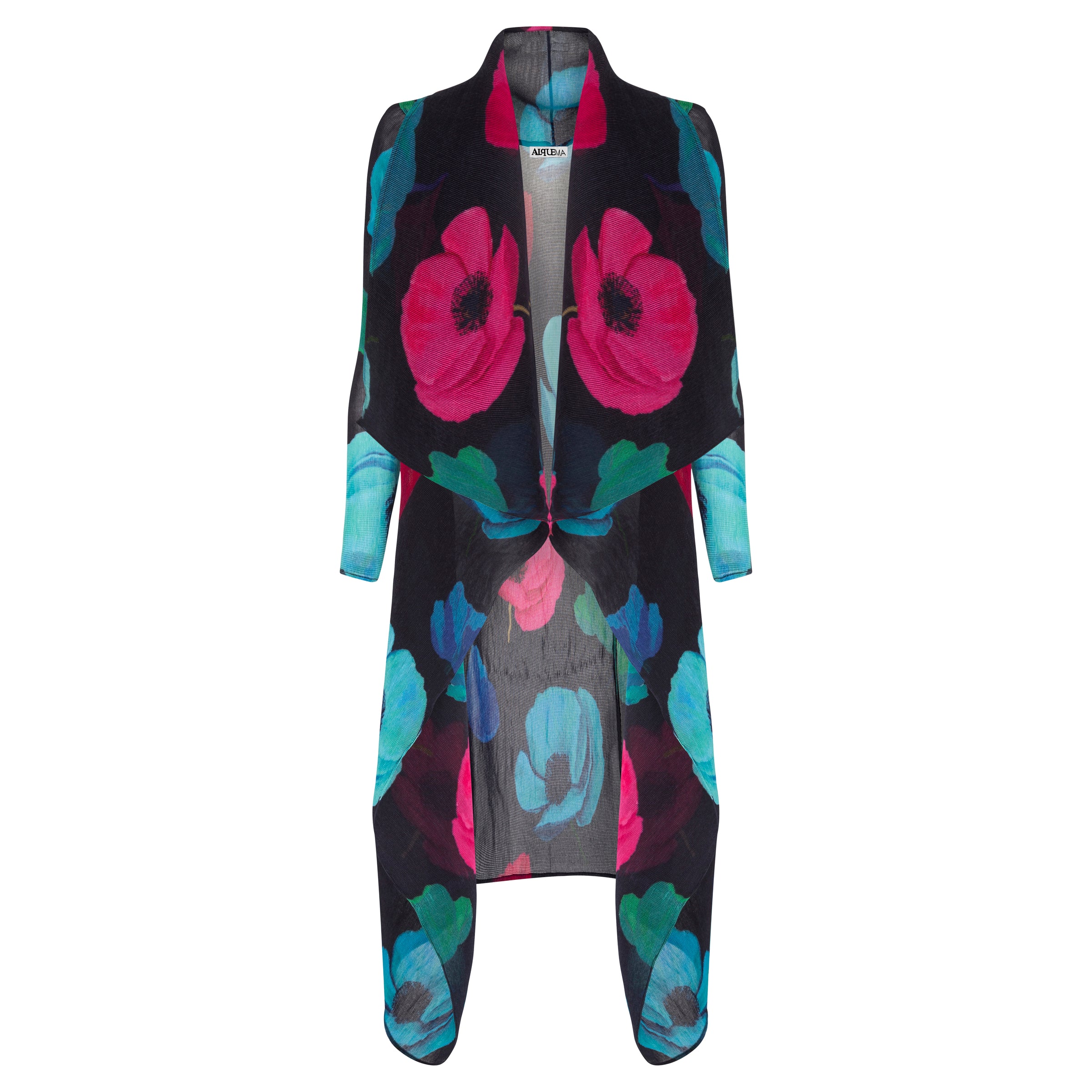 The Collare Coat in print is an iconic layering piece reimagined with bold artistry. Made from 100% chiffon, it’s delicately sheer, midi in length, and finished with long sleeves and a signature waterfall collar. Hand pleated for texture and form, it moves effortlessly with the body, bringing flow and dimension to every look. The printed design adds vibrancy and individuality, making this coat a statement piece that elevates everyday or event dressing.