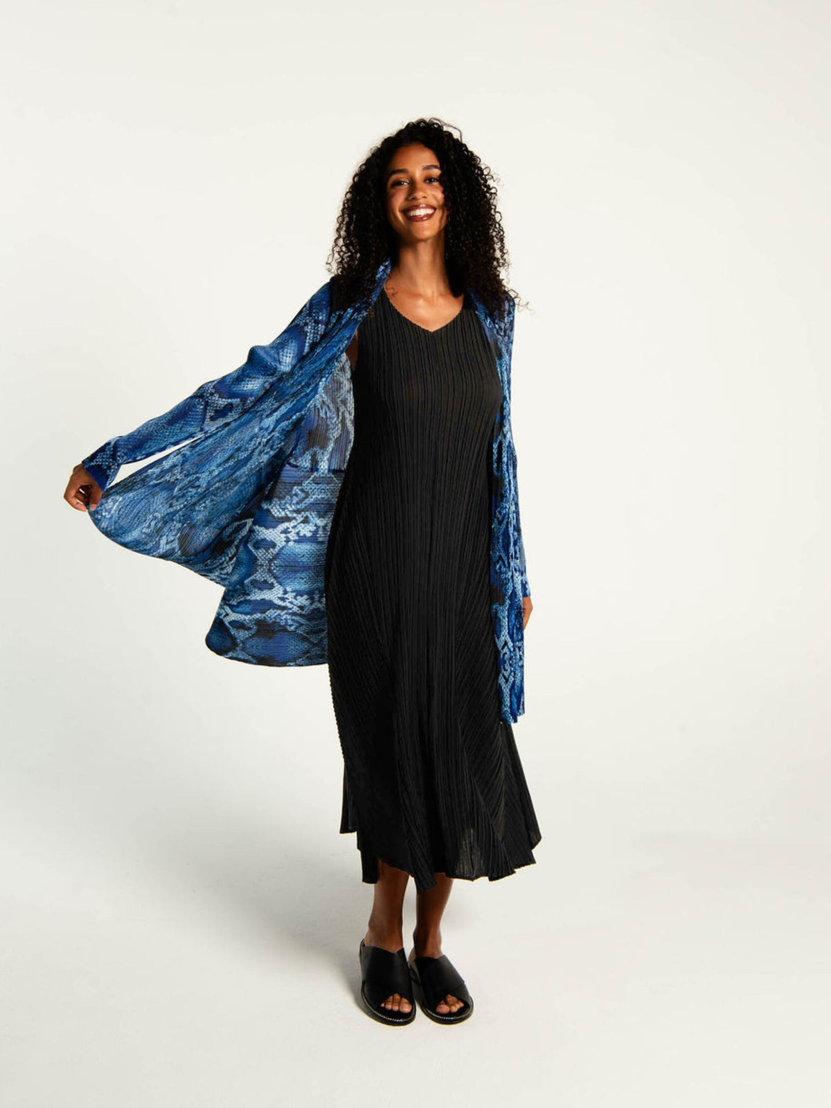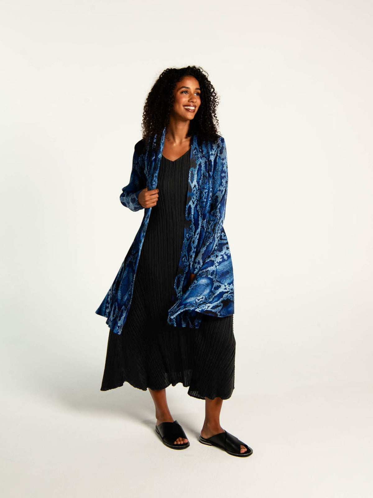 Crafted in Alquema’s High Temp fabrication, the Lagoon Coat holds its sculptural pleat with ease while remaining lightweight and wearable. This is the ideal piece for travel and layering from day to evening. Worn over dresses or paired with separates, it’s a modern wardrobe staple that adds impact in an instant.