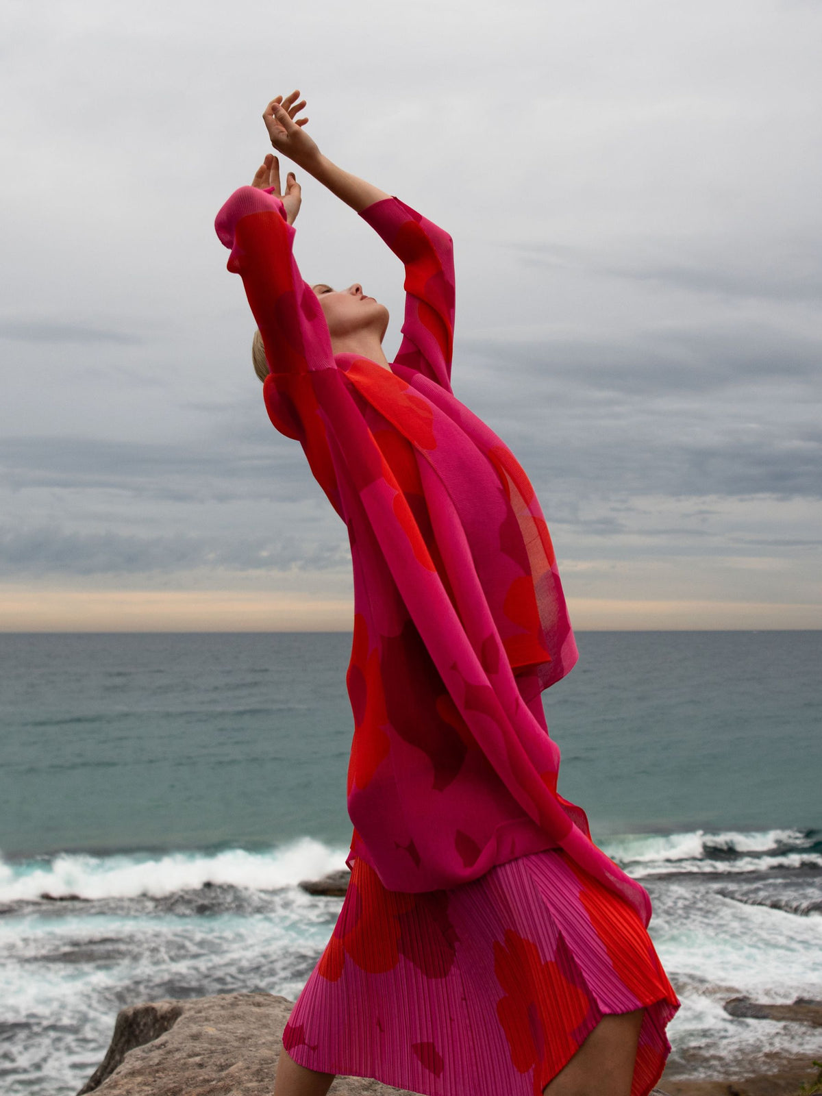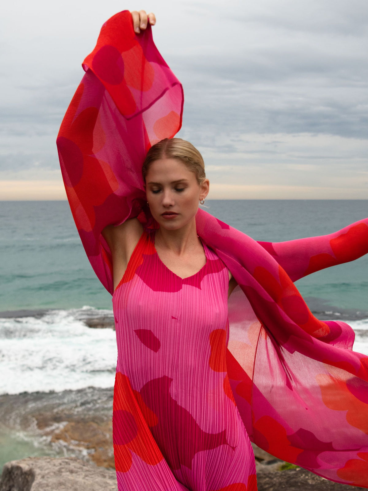 Boldly expressive, the Estrella Dress in print is a celebration of pattern, texture, and sculptural form. With a sleeveless, V-neck design and a pleated bodice that falls into a voluminous skirt, it moves with rhythm and ease. The print infuses the architectural silhouette with a sense of artistry, each fold revealing subtle shifts in colour and shape. Designed to contour and flow, the Estrella Dress is a wearable canvas of individuality and grace.