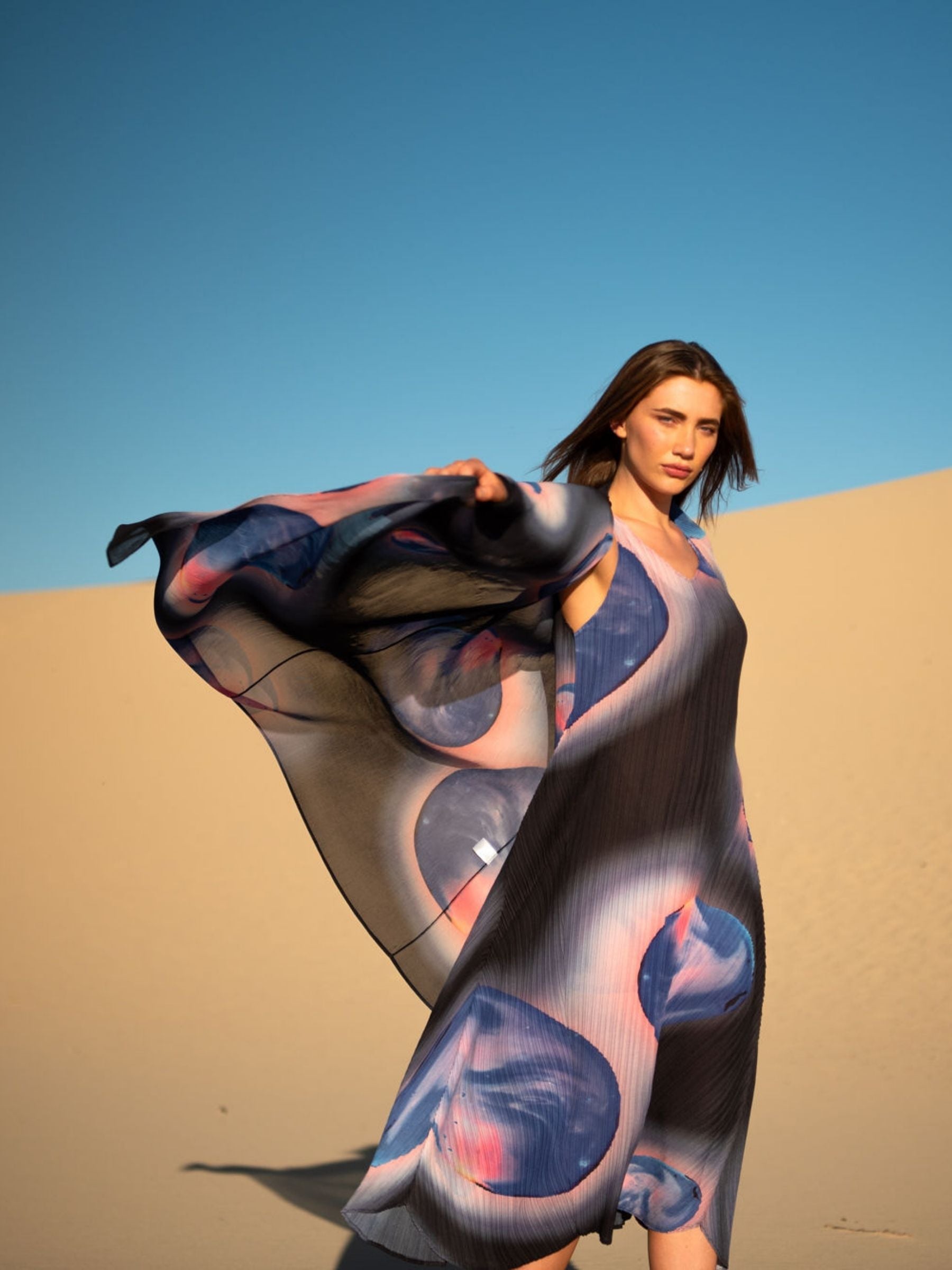 The Estrella Dress is designed for effortless travel! Lightweight, wrinkle-resistant, and easy to pack. The signature pleating allows it to fold compactly without losing its shape, making it ideal for any getaway.