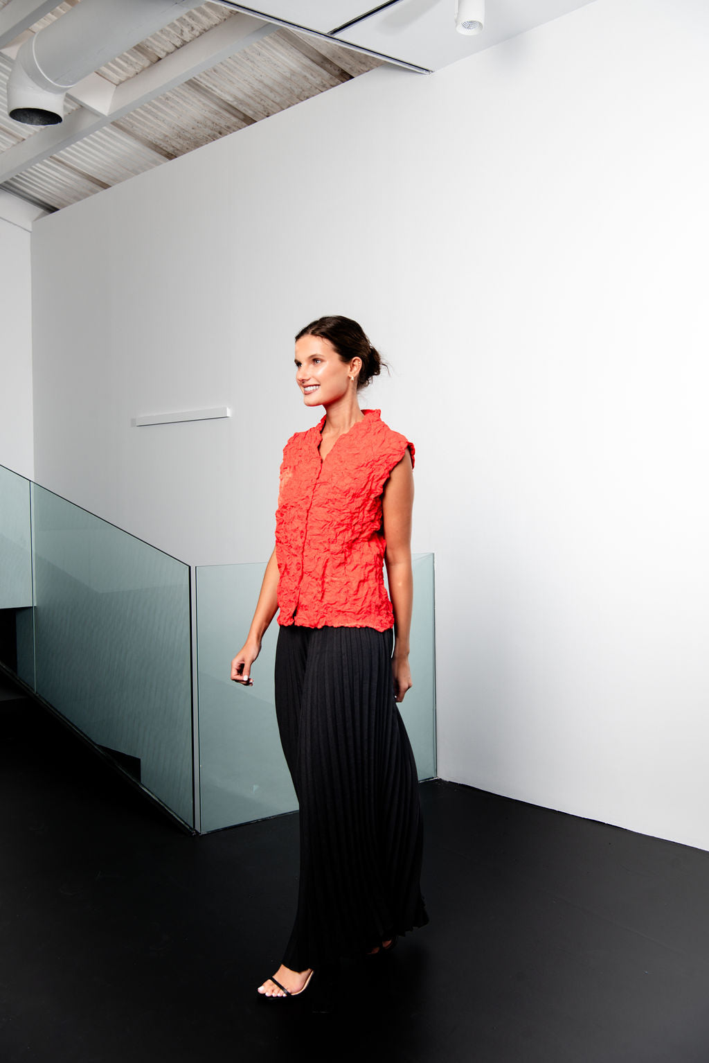 Anyone say the perfect vest? Double layered hand pleated, button through vest.