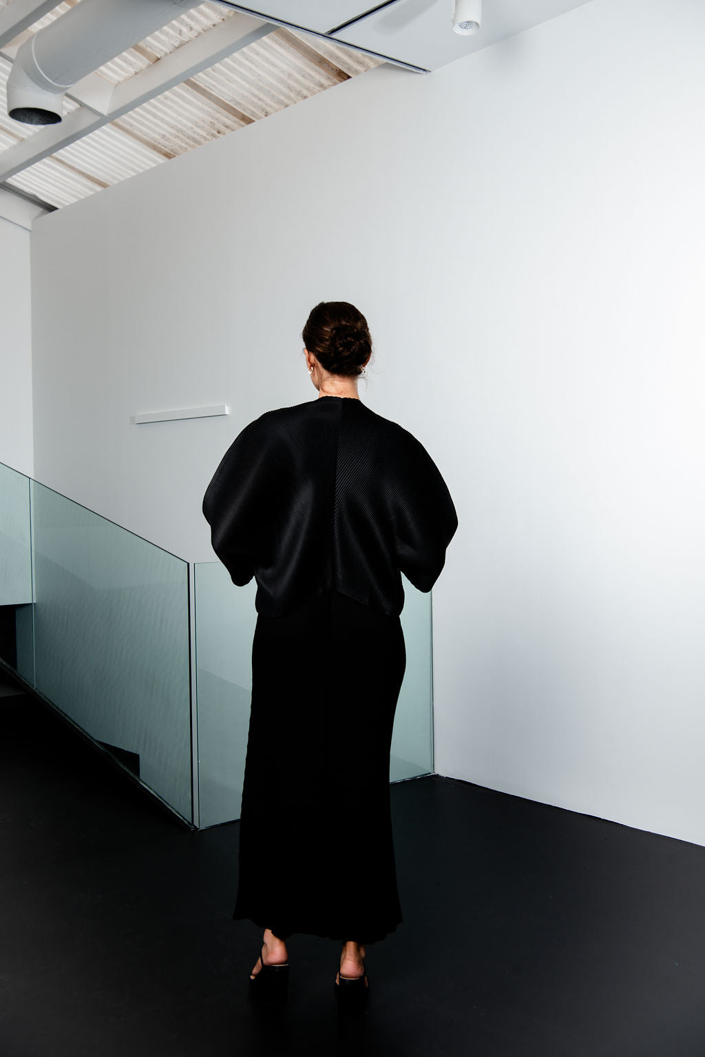 Alquema designs with every woman in mind. The intricate nature of our Shibori pleating lends itself to versatile cuts, fitting all body shapes.