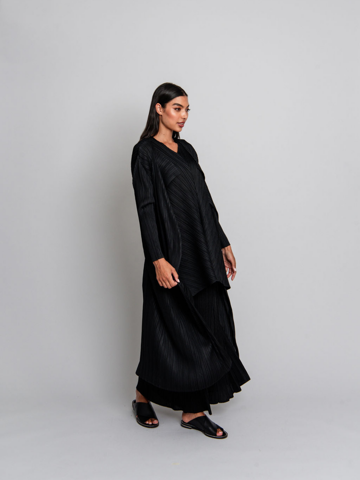 The Simply Pleat Bolero redefines layering with its cropped silhouette and slim fit. Designed to complement Alquema’s pleated dresses, this long-sleeve bolero offers versatility as a modern workwear staple or an elevated evening layer. The unique handcrafted pleating adds depth and texture, making it a must-have piece.